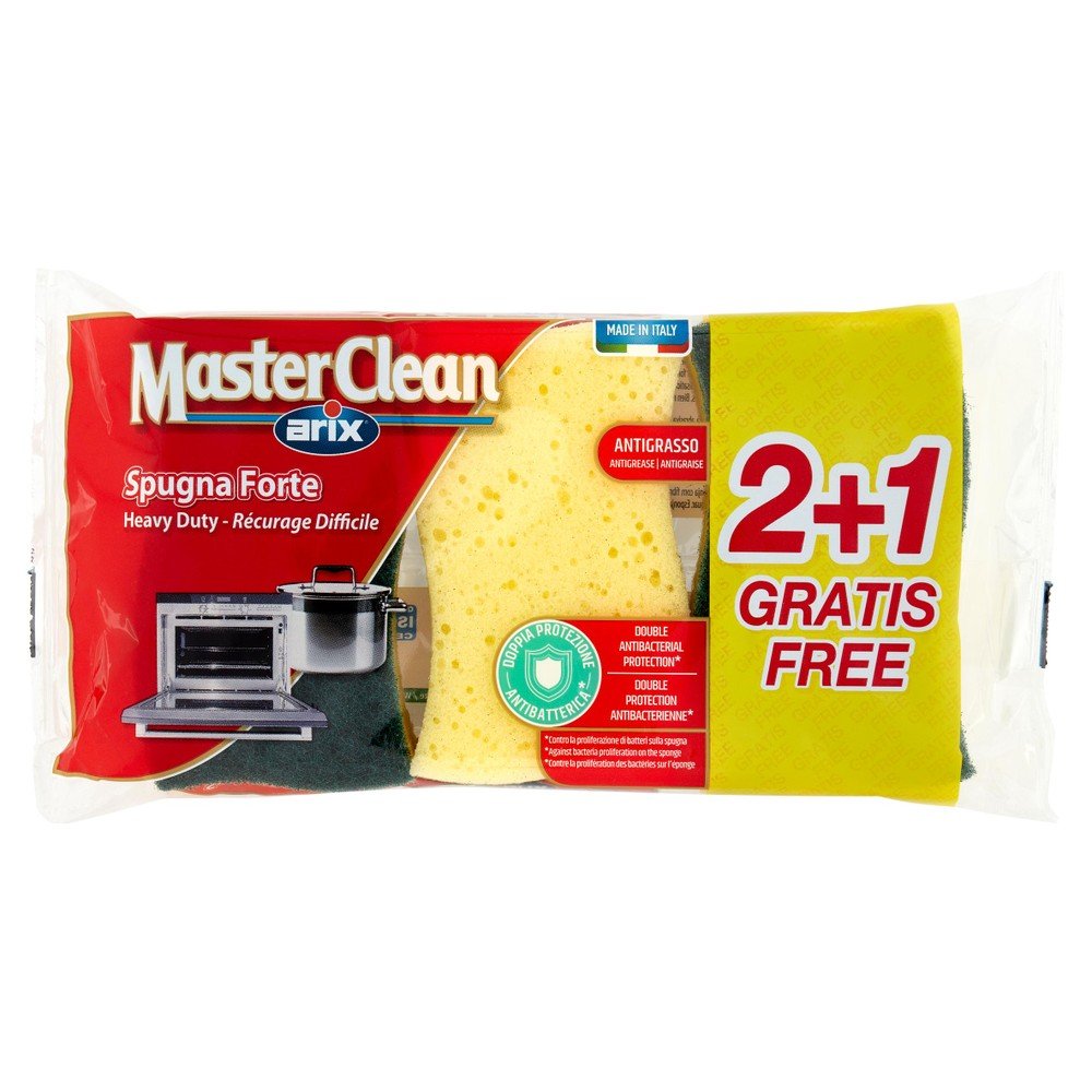 اريكس اسفنج ماستر كلين اكسترافورتي اسفنجة جلخ 2 + 1 – قطعجديد – صنع بفخر في إيطاليا – شديد التحمل – مضاد للبكتيريا – مضاد للشحوم – سهل الشطفإسفنجة كاشطة بألياف قوية مضادة للشحوم: تبقى نظيفة لفترة أطول! بفضل المسام المفتوحة للإسفنجة ، يتم شطفها بسهولة شديد