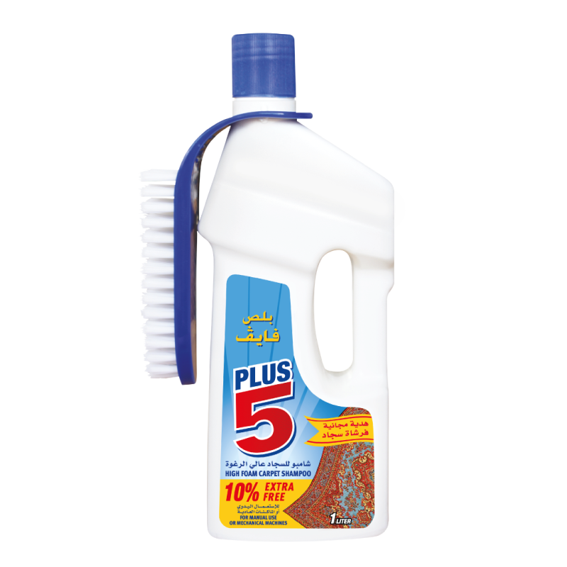 بلص فايف شامبو للسجاد عالي الرغوة يتميز بتركيبته الخاصة لتنظيف السجاد والموكيت. تعمل رغوته الغنية على التغلغل وإزالة الزيوت والدهون والاوساخ وتعيد للسجاد لمعانه والوانه الزاهية. مناسب لجميع انواع السجاد باستثناء الحرير. صمم خصيصا للغسيل اليدوي والما