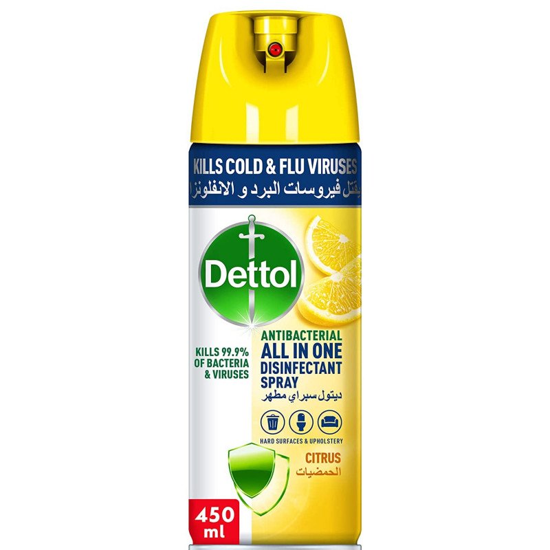 يحمي بخاخ ديتول المطهر أنت وعائلتك من 100 مرض تسبب الجراثيم والبكتيريا والفيروسات. هذا البخاخ المطهر بالكحول (المحوَّل) يطهر منزلك ويزيل البكتيريا المسببة للرائحة. يساعد في قتل فيروسات البرد والإنفلونزا ، بما في ذلك فيروس h1n1. يمكن استخدام بخاخ ديتول الم