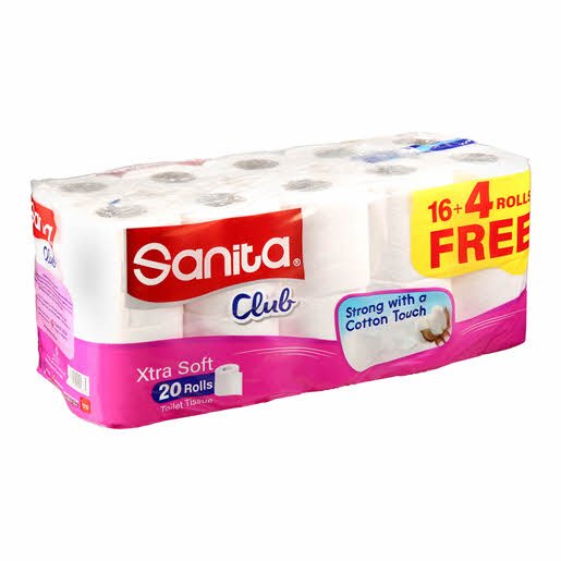 مناديل سانيتا كلوب فائقة النعومة (منقوشة): اختيارك الذكي لمناديل المرحاض. يوفر Sanita Club Extra Soft نسيجًا ناعمًا وقويًا لضمان رعاية موثوقة واستخدام مناسب..