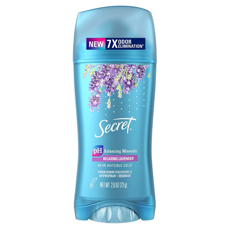 يستمر Secret Invisible Solid في الجفاف ويبقى جافًا مع تطبيق سلس ومتساوي. تتميز هذه التركيبة الفريدة بتقنية تنشيط العرق ، والتي تلتقط الرائحة وتطلق العطر. تستخدم تقنية تنشيط العرق جزيئات معادلة للرائحة لاحتجاز الرائحة وإغلاقها ، ثم استبدالها برائحة منعشة ل