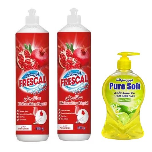 فريسكال سائل جلي 900 غرام حبتان + سائل غسيل أيدي 500 مل..