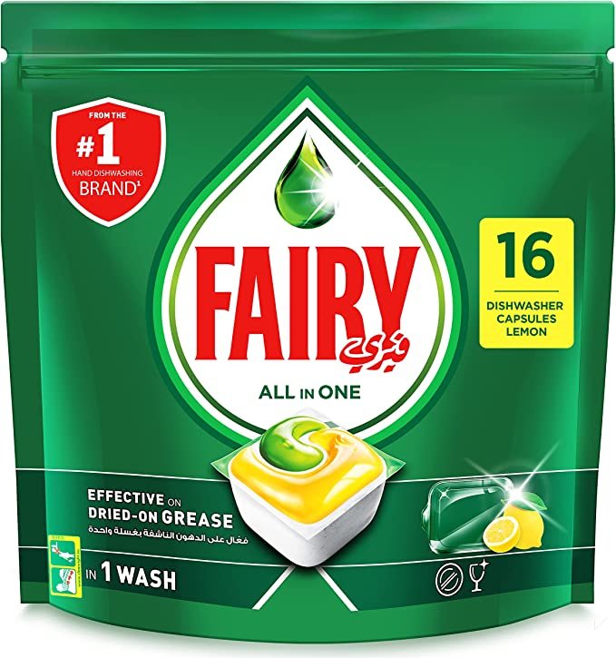 أقراص غسالة الأطباق الكل في واحد الأصلية برائحة الليمون – 16 كبسولة صفراء..
