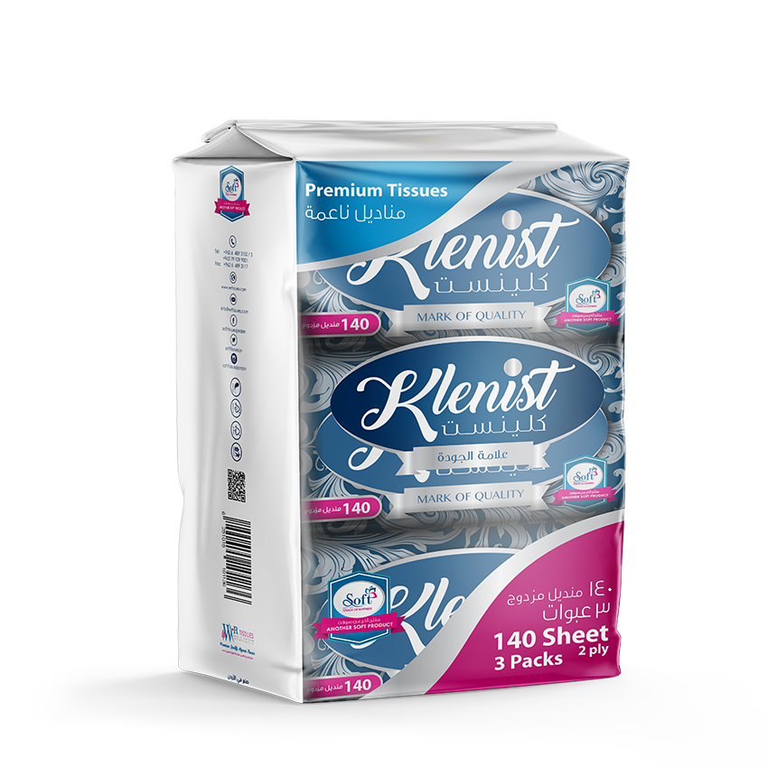 كلينست مناديل نايلون عبوة 140 منديل طبقتين (3 قطع)..