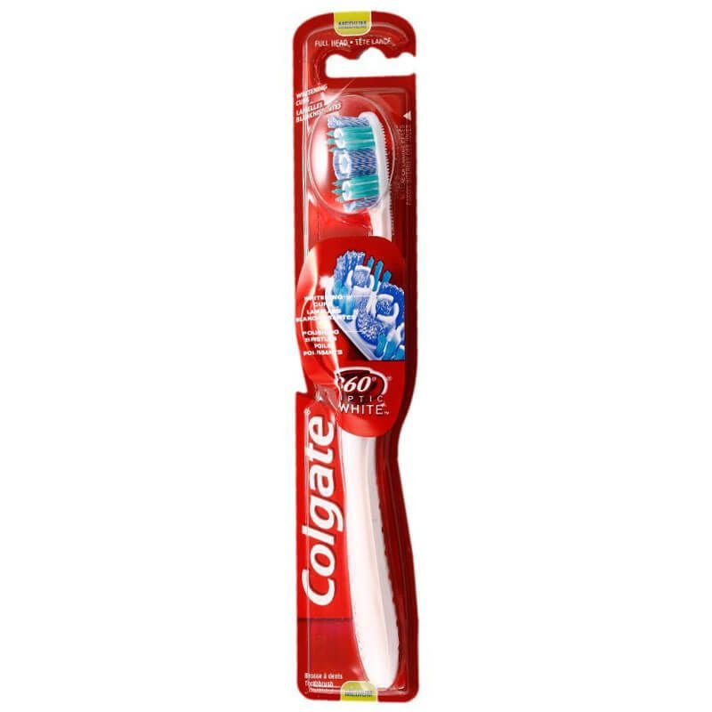 تحتوي فرشاة أسنان Colgate® 360˚ Optic White ™ على شعيرات تلميع تساعد على تبييض الأسنان عن طريق إزالة البقع السطحية وتنظيف الأماكن التي يصعب الوصول إليها. يحتوي أيضًا على منظف للخد واللسان يساعد على إزالة الجراثيم المسببة للرائحة لتنظيف الفم بالكامل…