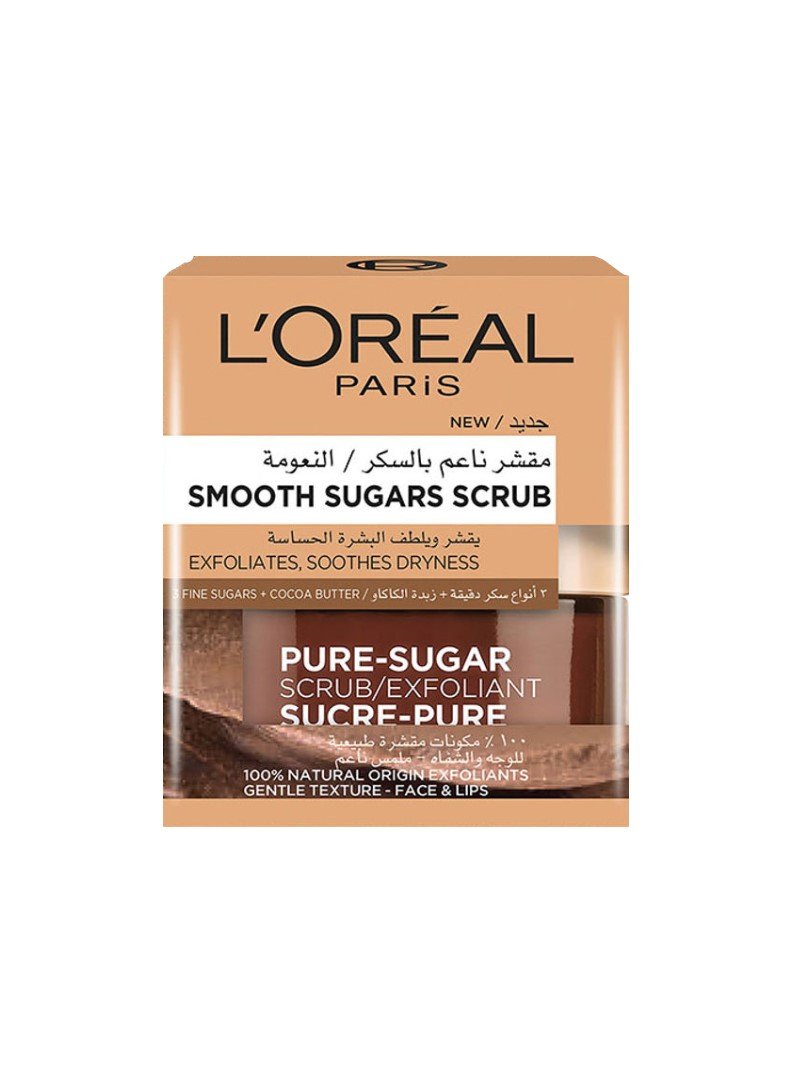 مقشر السكر الناعم النقي يتكون من ثلاثة أنواع من السكر البني والاشقر والأبيض ومعزز بزبدة الكاكاو. مقشر ناعم ولطيف على البشرة يمنحها نعومة فائقة ويزيل عنها الاوساخ والشوائب المتراكمة. يساعد على تخفيف المسام ويجعلها أقل وضوحا ويعيد توازن البشرة ويخ