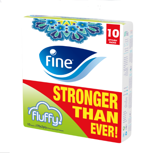 مناديل ورقية فاين منفوش 10 عبوات 170×2 رقائق..