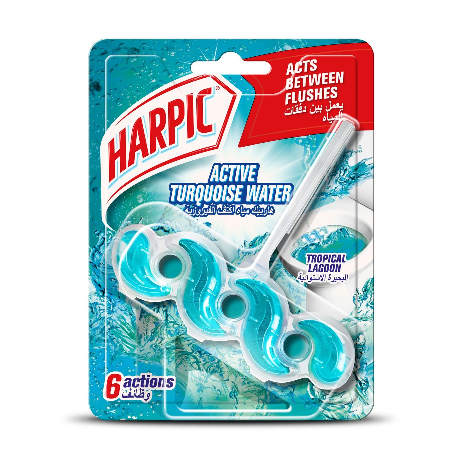Harpic Turquoise Power 6 عبارة عن كتلة مرحاض تعمل على إنعاش كتلة المرحاض الخاصة بك لما يصل إلى 250 تدفقًا! تعمل ستة أفعال قوية على تلوين المياه الفيروزية لتنظيف مستمر ونضارة مع كل شطف. للبحيرة الاستوائية…